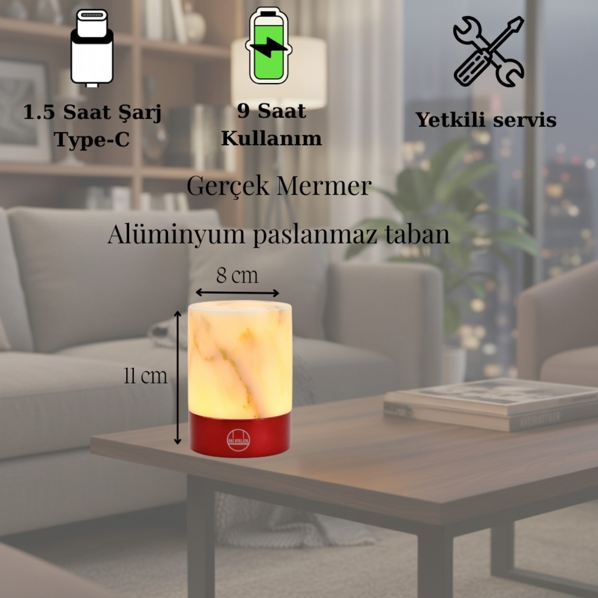 Mermer yüzeye hafifçe dokunarak ışığın ÅŸiddetini ayarlayabilirsiniz. Bu dimmer özelliÄŸi sayesinde, ister okuma ışığı ister hafif bir ambiyans ışığı olsun, tam ihtiyacınıza uygun aydınlatmayı saÄŸlayabilirsiniz. Bu zarif ve modern lamba, evinizdeki her köÅŸeye uyum saÄŸlayacak ve misafirlerinizin dikkatini çekecek. Sadece bir lambadan daha fazlası, bir yaÅŸam tarzı ifadesi. Siz de bu özel tasarım mermer lambayı keÅŸfedin ve evinizin atmosferini yeniden yaratın.